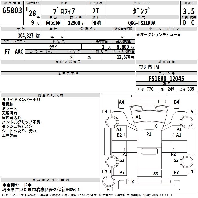 Год выпуска2016 Пробег 304 000 км КузовFS1EKDA Комплектация DUMP