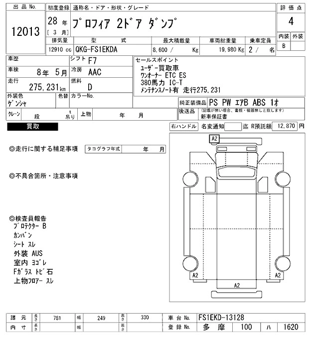 Год выпуска2016 Пробег 275 000 км КузовFS1EKDA Комплектация DUMP