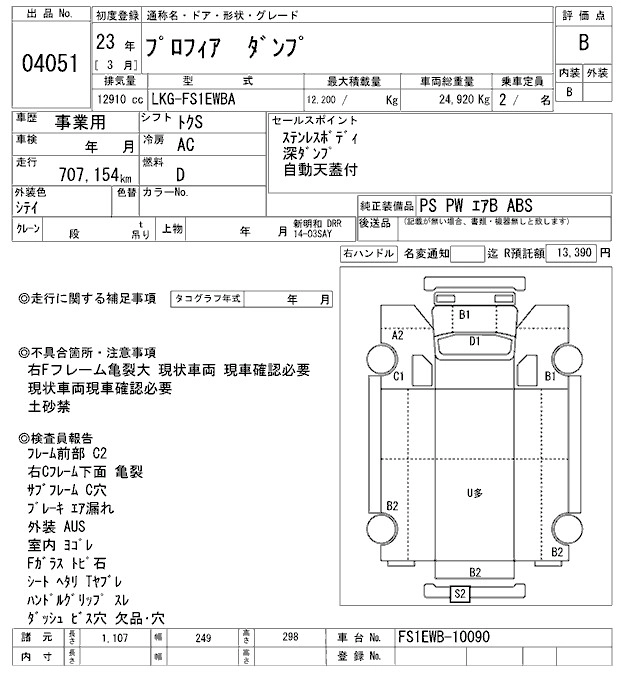 Год выпуска2011 Пробег 707 000 км КузовFS1EWBA Комплектация DUMP