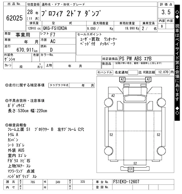 Год выпуска2016 Пробег 671 000 км КузовFS1EKDA Комплектация DUMP