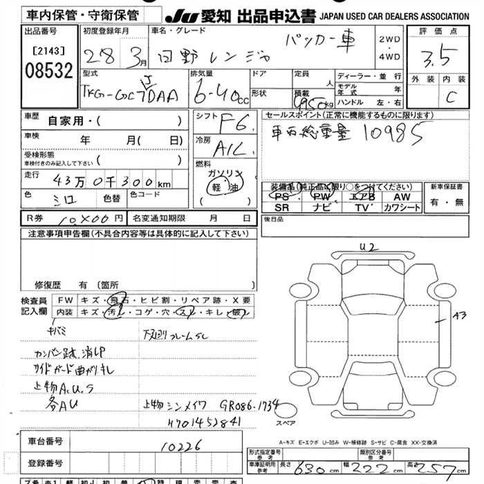 Статус продан Лот 8532 Аукцион JU Aichi Дата аукциона 29.01.2026