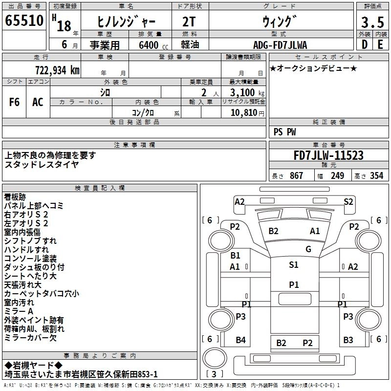 HINO RANGER 2006 г., лот № 65510