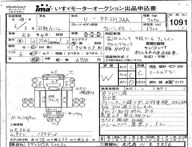 Год выпуска1994 Пробег 276 000 км КузовFF2HJAA Комплектация CRANE ATTACHING
