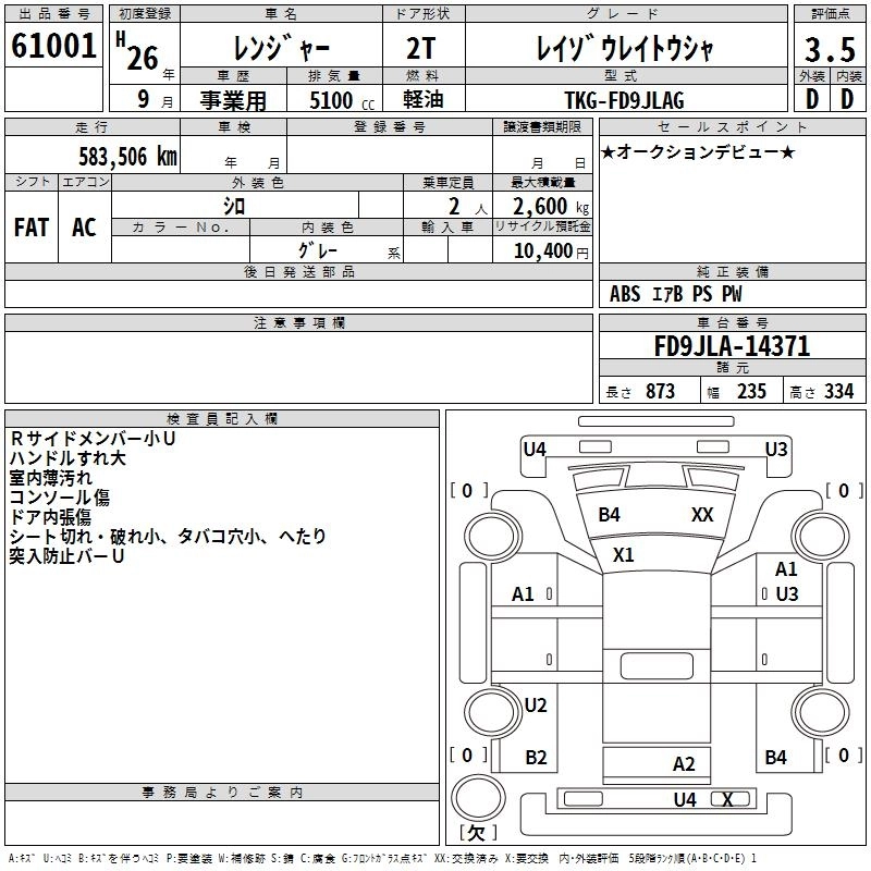 HINO RANGER 2014 г., лот № 61001