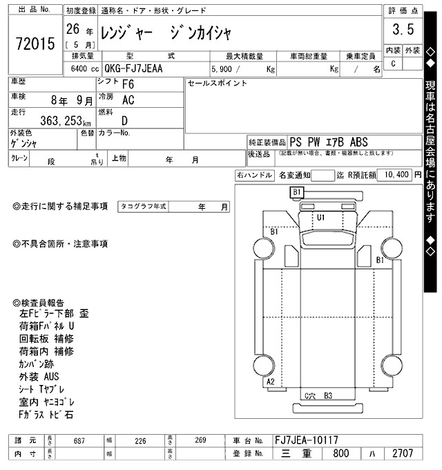 Год выпуска2014 Пробег 363 000 км КузовFJ7JEAA Комплектация GARBAGE