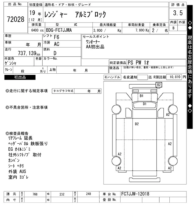 Год выпуска2007 Пробег 737 000 км КузовFC7JJWA Комплектация COMMON. ALUMINIUM B