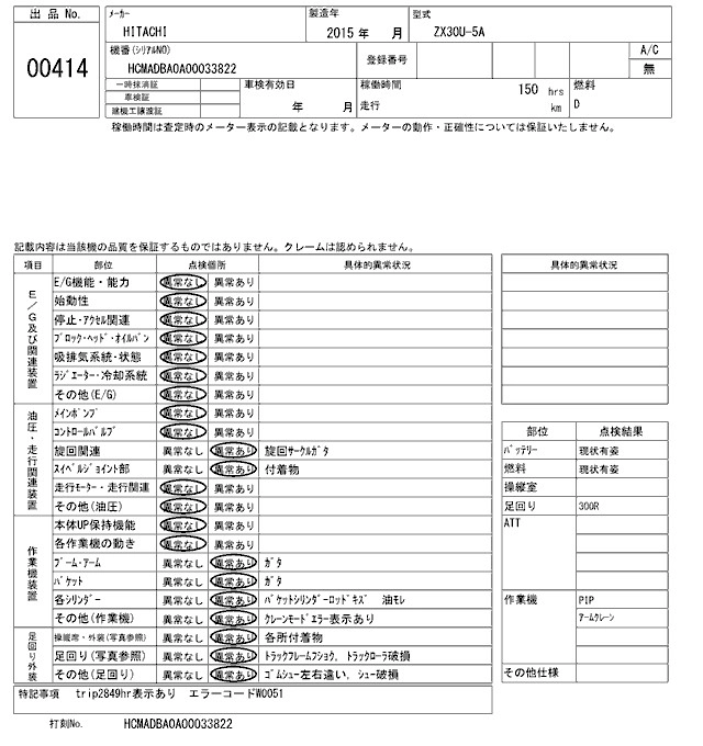 HITACHI OTHER 2015 г., лот № 414