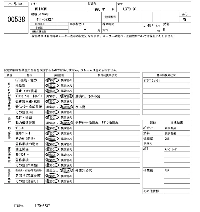 HITACHI OTHER 1997 г., лот № 538