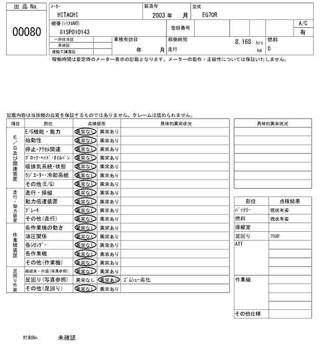 HITACHI OTHER 2003 г., лот № 80