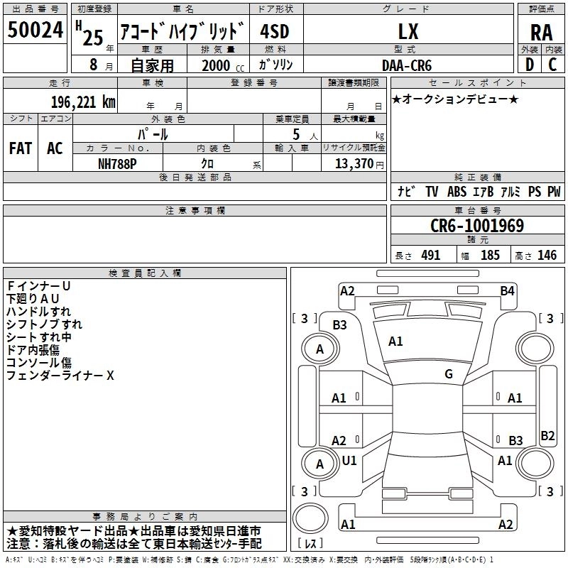 HONDA ACCORD HYBRID 2013 г., лот № 50024
