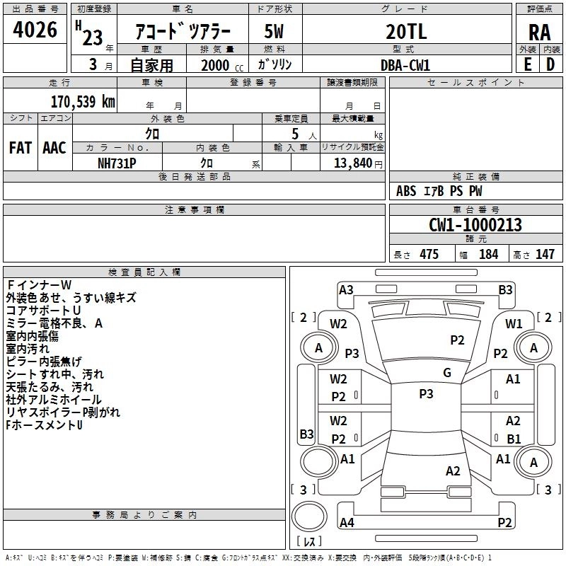 | 20TL | DBA-CW1 | R20A | FF | 5AT | 1997cc | 156ps(115kW)/6300rpm | AИ-92 | 2 748 000 |