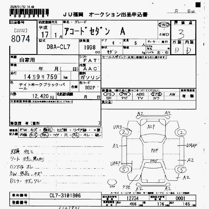 | 20A | DBA-CL7 | K20A | FF | 5AT | 1998cc | 155ps(114kW)/6000rpm | AИ-92 | 2 037 000 |