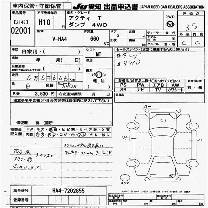HONDA ACTY TRUCK 1998 г., лот № 2001