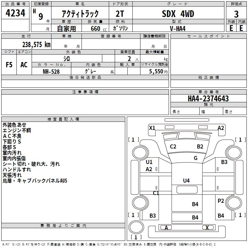 HONDA ACTY TRUCK 1997 г., лот № 4234