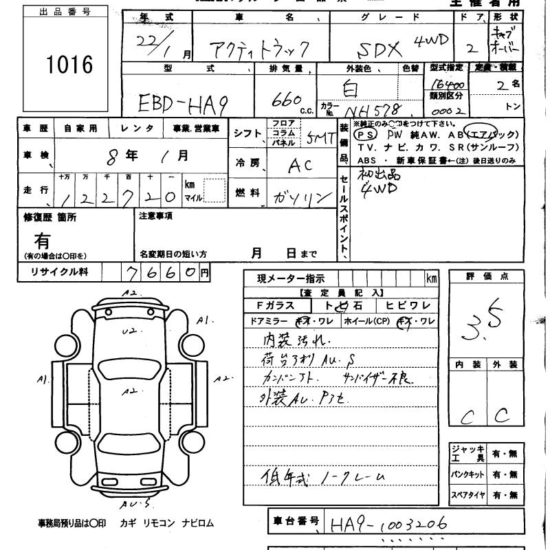 HONDA ACTY TRUCK 2010 г., лот № 1016