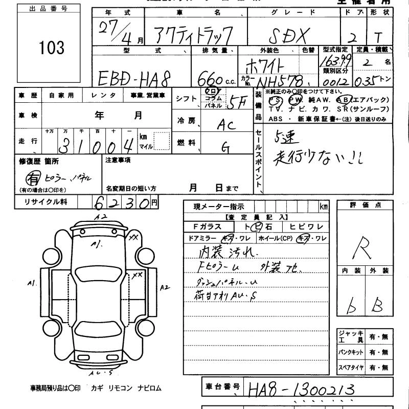 HONDA ACTY TRUCK 2015 г., лот № 103