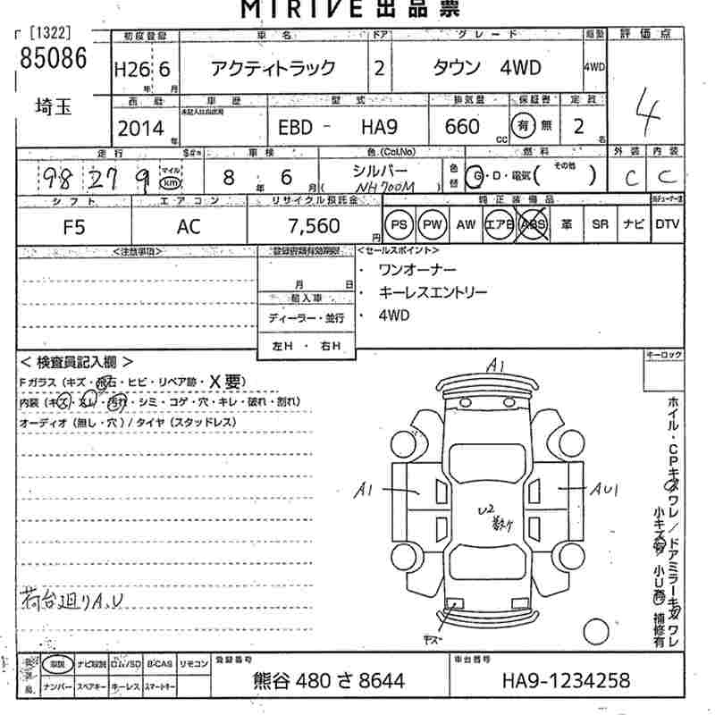 HONDA ACTY TRUCK 2014 г., лот № 85086
