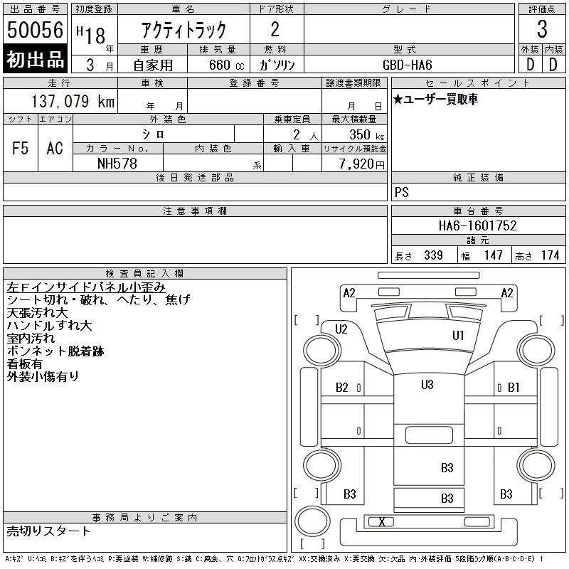 HONDA ACTY TRUCK 2006 г., лот № 50056
