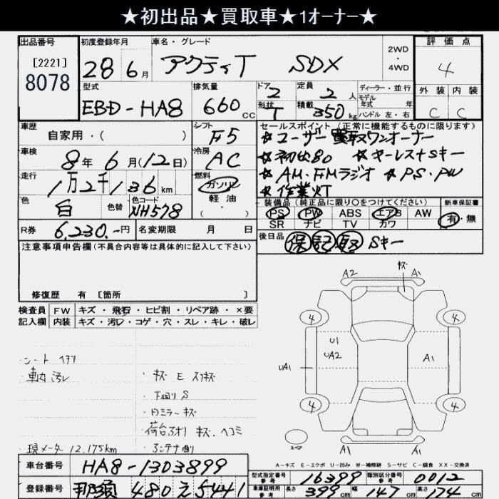 HONDA ACTY TRUCK 2016 г., лот № 8078