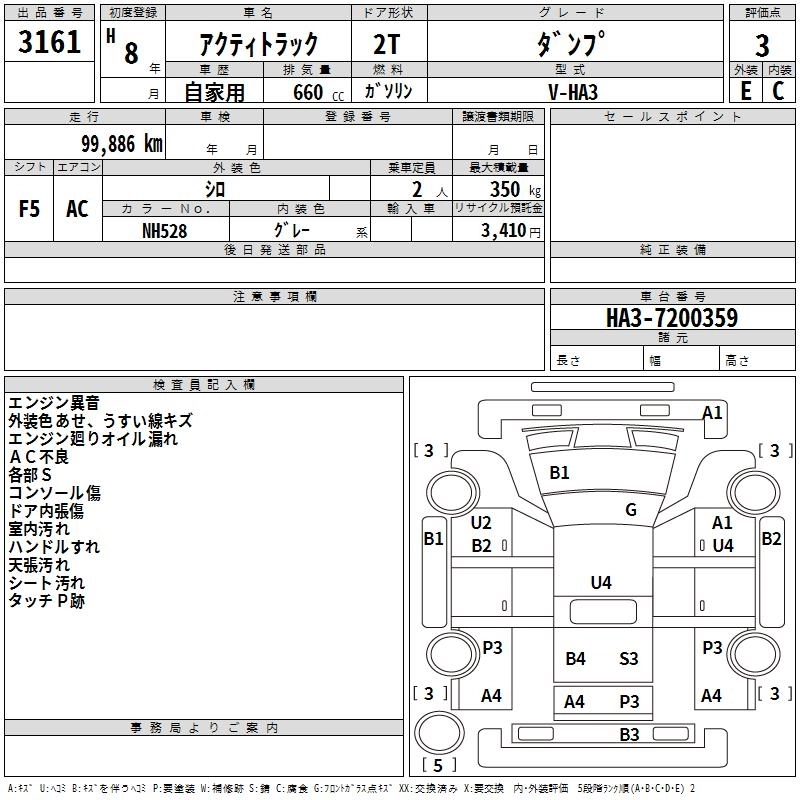 HONDA ACTY TRUCK 1996 г., лот № 3161