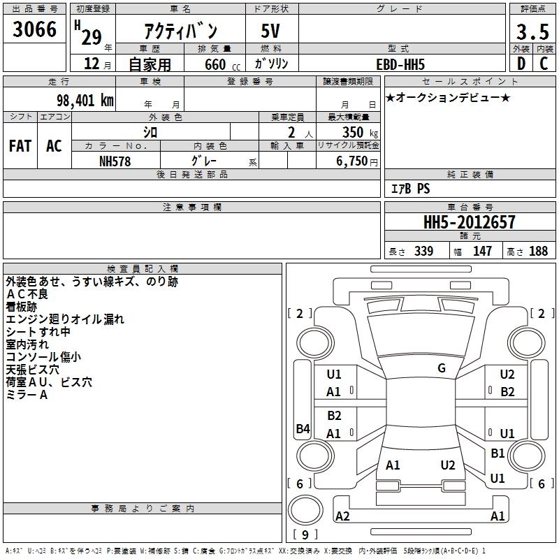 HONDA ACTY VAN 2017 г., лот № 3066