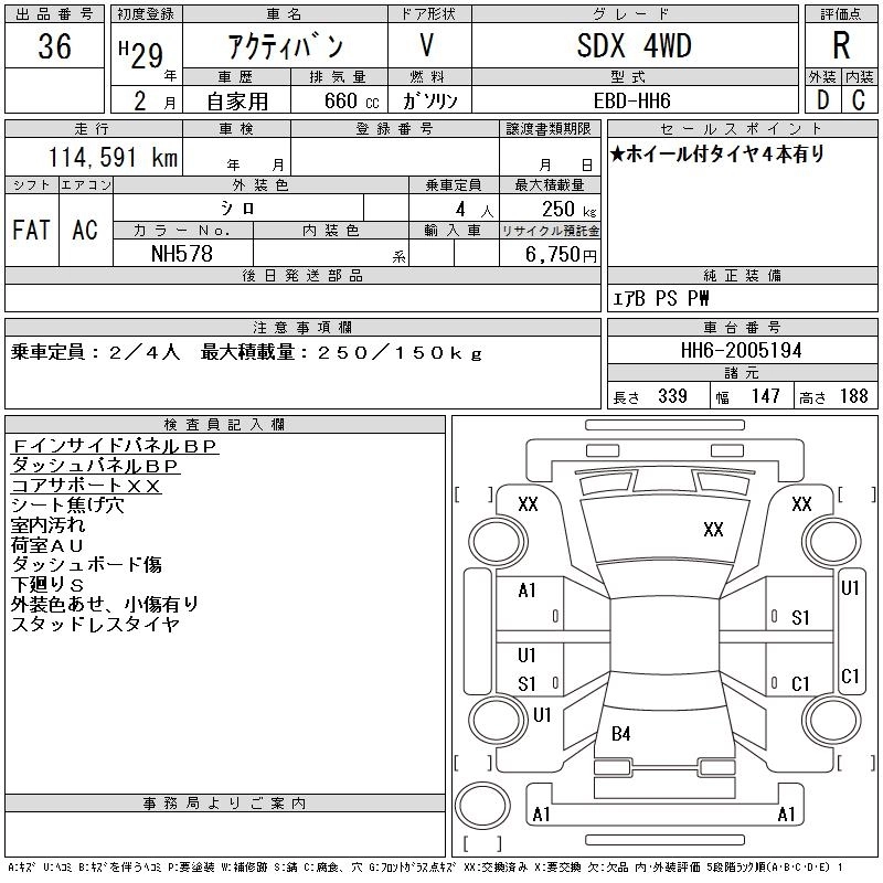 HONDA ACTY VAN 2017 г., лот № 36