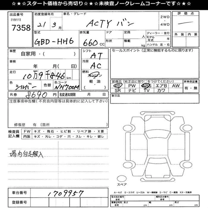HONDA ACTY VAN 2009 г., лот № 7358
