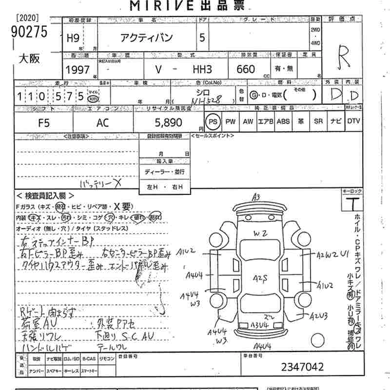 HONDA ACTY VAN 1997 г., лот № 90275