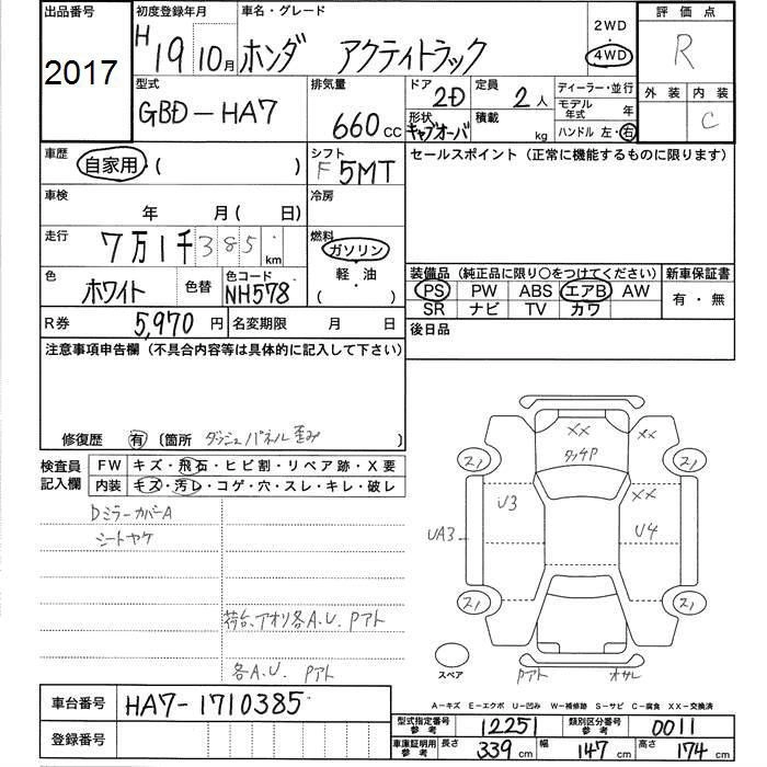 Статус выставлен на аукцион Лот 2017 Аукцион JU Toyama Дата аукциона 29.01.2026