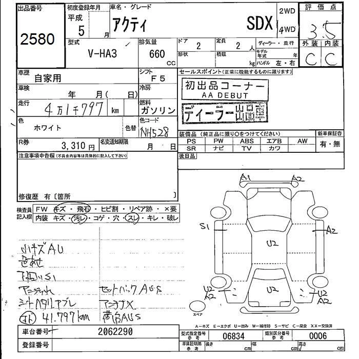 HONDA ACTY 1993 г., лот № 2580