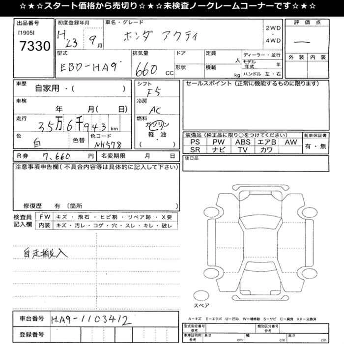HONDA ACTY 2011 г., лот № 7330