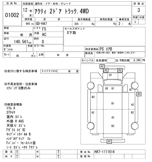 HONDA ACTY 2000 г., лот № 1002