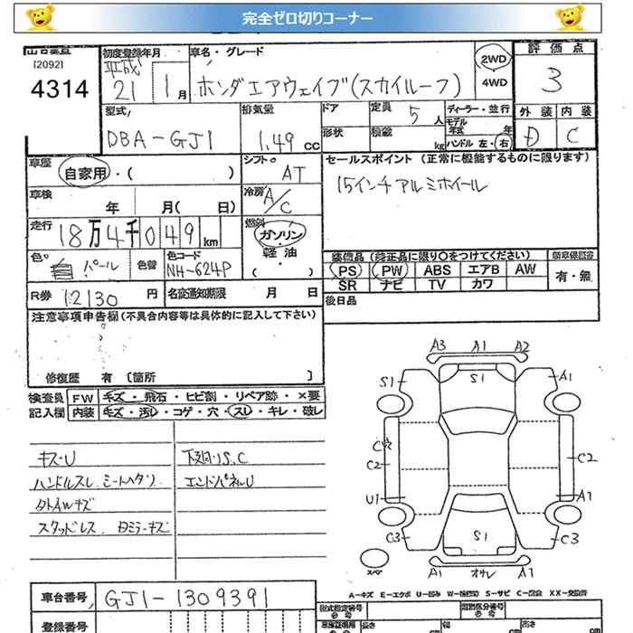 HONDA AIRWAVE 2009 г., лот № 4314
