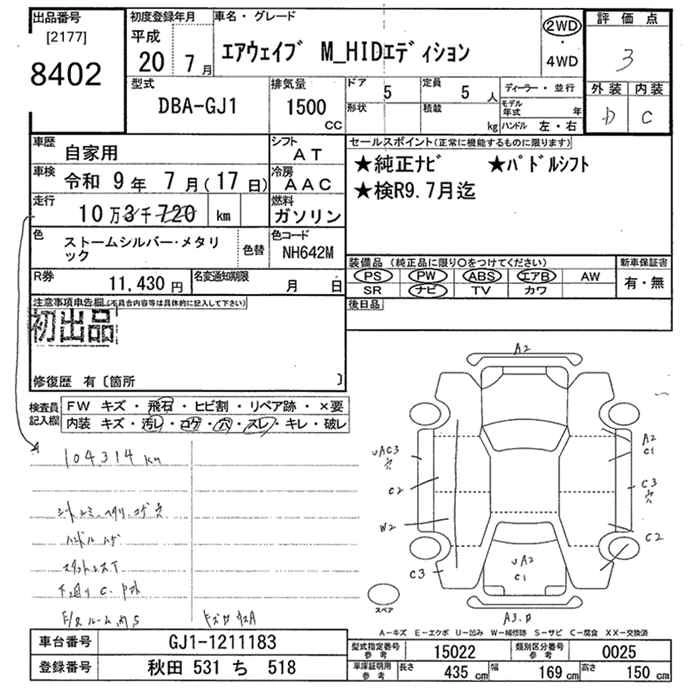 | M S PACKAGE | DBA-GJ1 | L15A | FF | CVT | 1496cc | 110ps(81kW)/5800rpm | AИ-92 | 1 585 500 | |