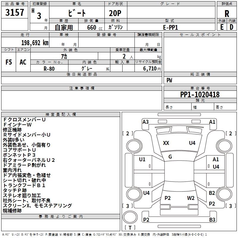 | BASEGRADE | E-PP1 | E07A | Mid-ship | 5MT | 656cc | 64ps(47kW)/8100rpm | AИ-92 | 1 388 000 |