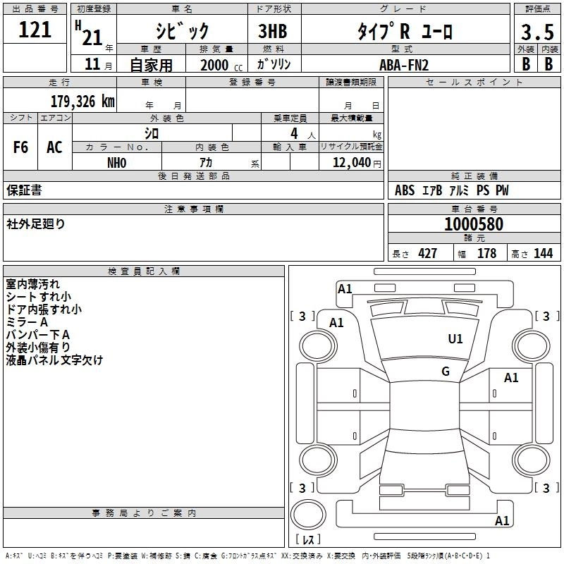 | TYPE R EURO | ABA-FN2 | K20A | FF | 6MT | 1998cc | 201ps(148kW)/7800rpm | AИ-95 | 2 980 000 |