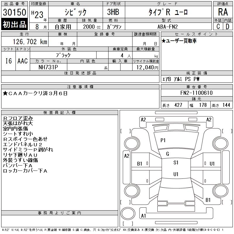 Статус выставлен на аукцион Лот 30150 Аукцион CAA Chubu Дата аукциона 18.03.2026