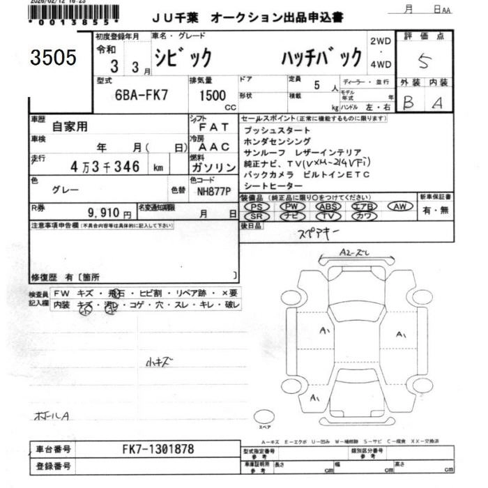 Статус выставлен на аукцион Лот 3505 Аукцион JU Chiba Дата аукциона 20.03.2026