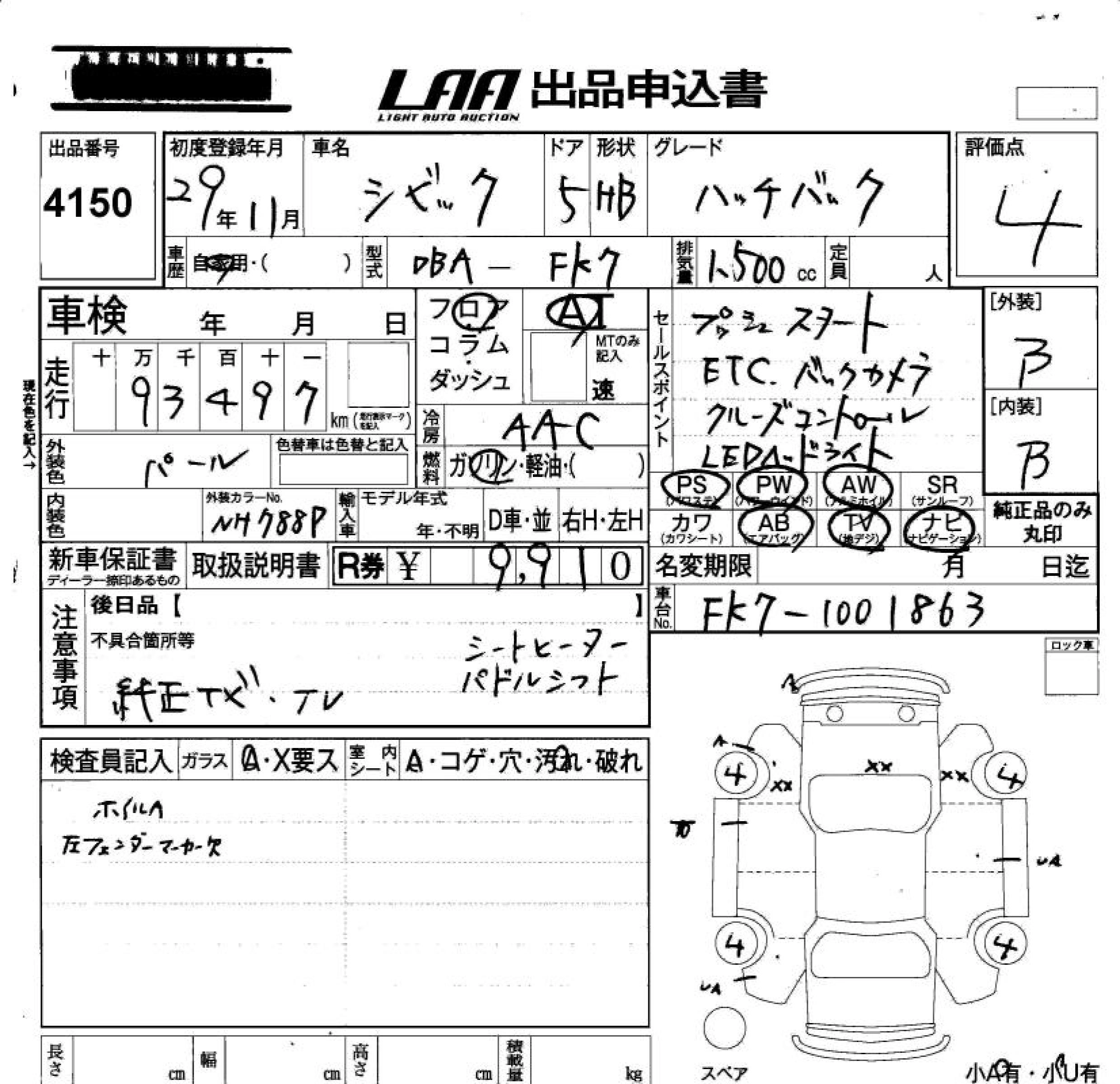 | HATCHBACK | DBA-FK7 | L15C | FF | CVT | 1496cc | 182ps(134kW)/6000rpm | AИ-95 | 2 730 240 | |