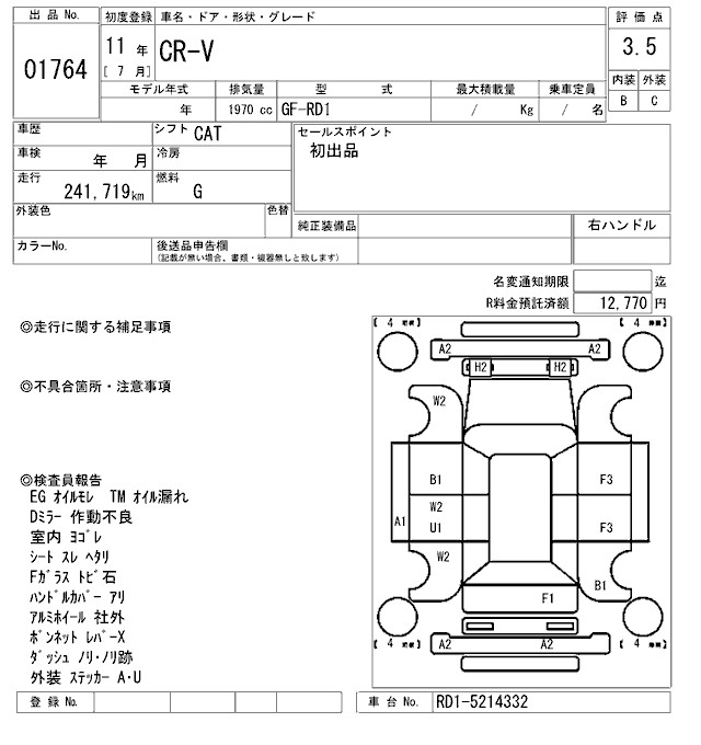 | FULLMARK | GF-RD2 | B20B | FF | 4AT | 1972cc | 150ps(110kW)/6300rpm | AИ-92 | 2 030 000 | |