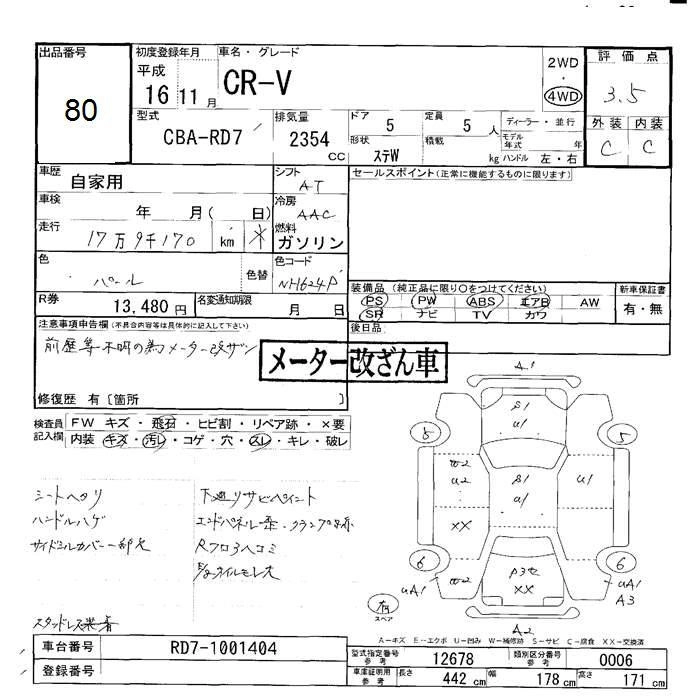 | IL-D | CBA-RD6 | K24A | FF | 5AT | 2354cc | 160ps(118kW)/6000rpm | AИ-92 | 2 226 000 |
