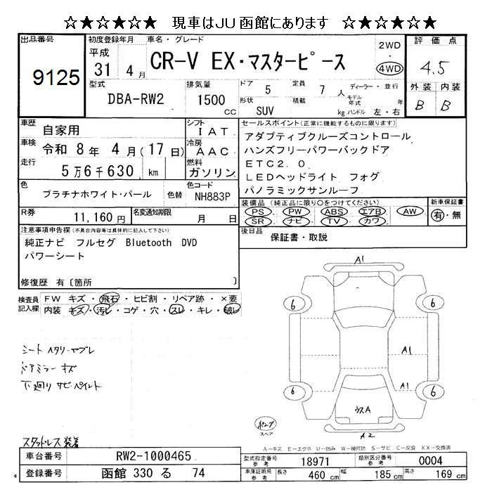 | EX MASTERPIECE | DBA-RW2 | L15B | Full-time 4WD | CVT | 1496cc | 190ps(140kW)/5600rpm | AИ-92 | 3 877 500 | |