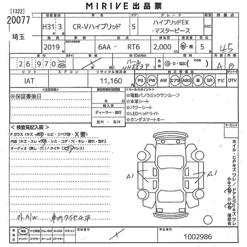 | EX MASTERPIECE | DBA-RW2 | L15B | Full-time 4WD | CVT | 1496cc | 190ps(140kW)/5600rpm | AИ-92 | 3 877 500 | |