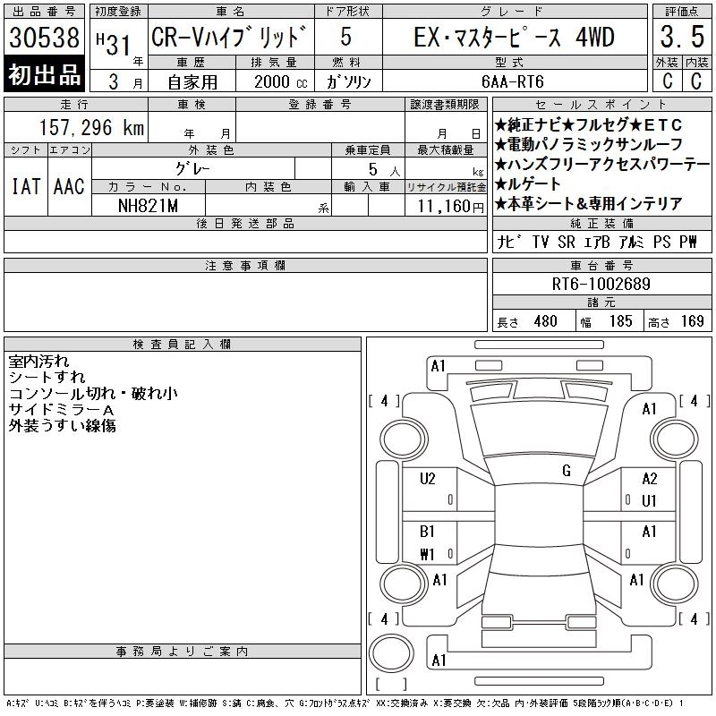 | EX MASTERPIECE | DBA-RW2 | L15B | Full-time 4WD | CVT | 1496cc | 190ps(140kW)/5600rpm | AИ-92 | 3 877 500 | |