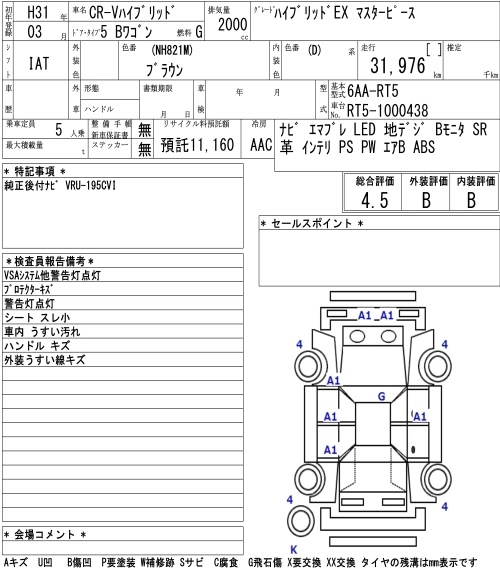 | EX MASTERPIECE | DBA-RW2 | L15B | Full-time 4WD | CVT | 1496cc | 190ps(140kW)/5600rpm | AИ-92 | 3 877 500 | |