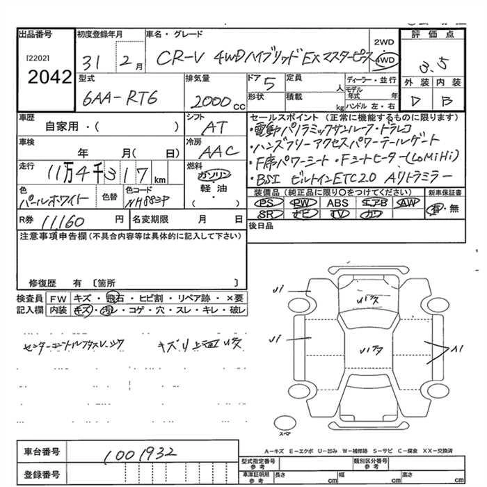 | EX MASTERPIECE | DBA-RW2 | L15B | Full-time 4WD | CVT | 1496cc | 190ps(140kW)/5600rpm | AИ-92 | 3 877 500 | |