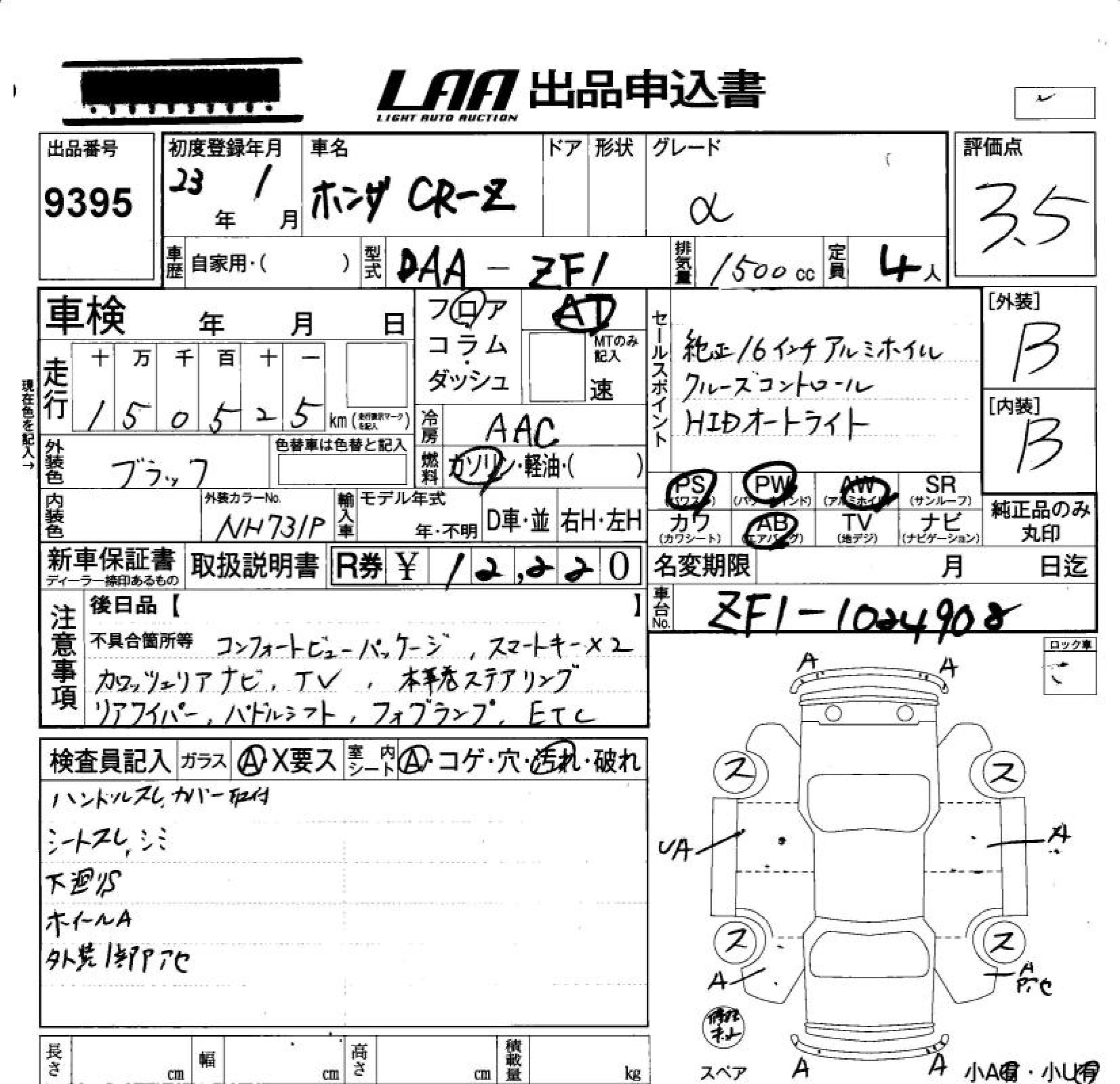 | ALPHA BLACK LABEL | DAA-ZF1 | LEA | FF | 6MT | 1496cc | 114ps(84kW)/6000rpm | AИ-92 | 2 510 000 | |