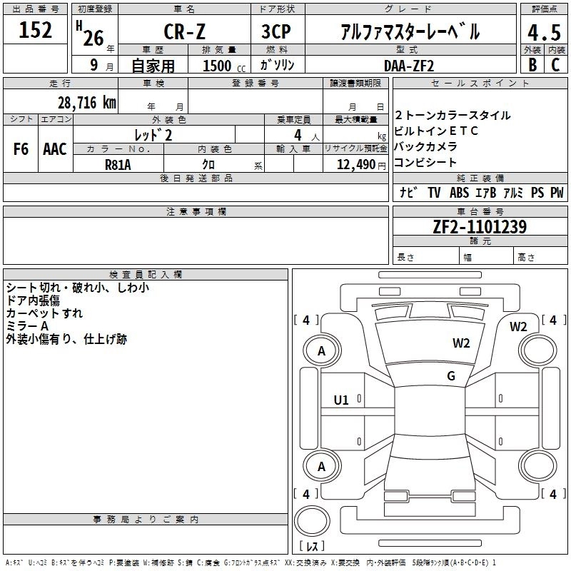 | ALPHA MASTER LABEL | DAA-ZF2 | LEA | FF | 6MT | 1496cc | 120ps(88kW)/6600rpm | AИ-92 | 2 705 142 | |