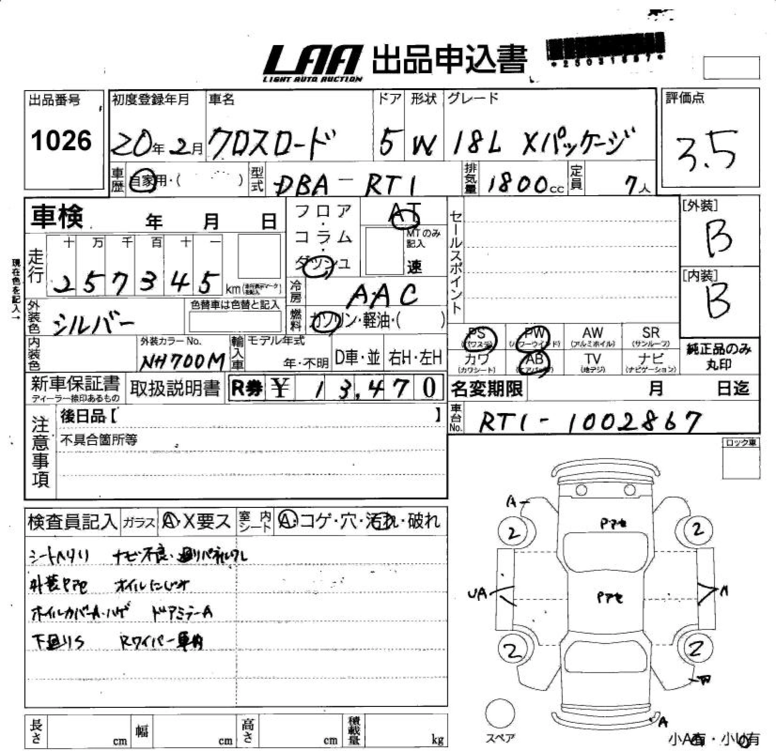 Статус выставлен на аукцион Лот 1026 Аукцион LAA Shikoku Дата аукциона 18.03.2026