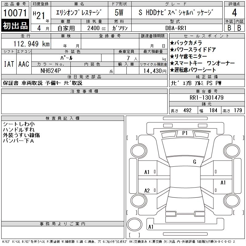 | S | DBA-RR2 | K24A | Full-time 4WD | 5AT | 2354cc | 160ps(118kW)/5500rpm | AИ-92 | 3 475 000 |